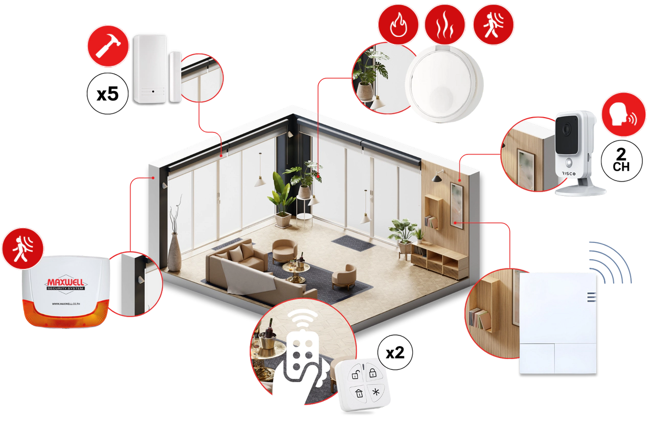 - Shock Detector ตรวจจับการงัด/ทุบประตูหน้าต่าง x 5